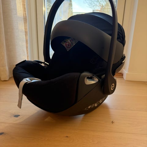 Cybex babyskydd och bilbarnstol med Isofix-bas. Babyskyddet sparsamt använt och i mycket fint skick. Bilbarnstol plus roterbar Isofix-bas är väl använt men också det i gott skick.
