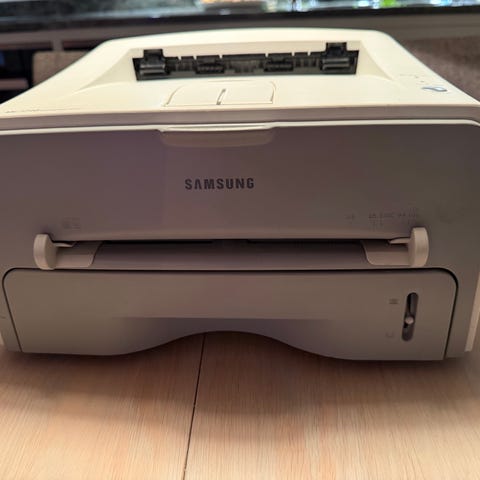 Brother HL-2170W trådlös laserprinter med svart och grå design. Komplett med sladdar för anslutning. Väl fungerande