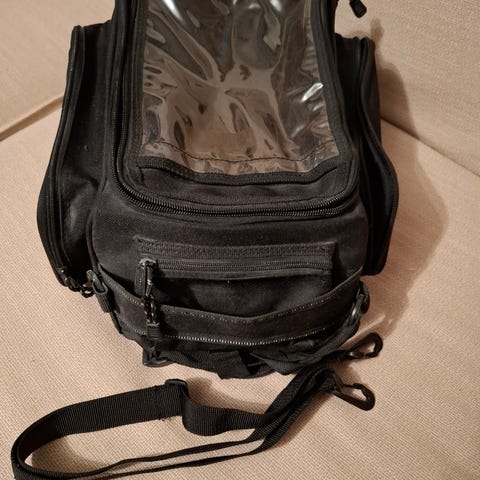 Säljer MC väska i funktionellt skick. Två remmar för fastspänning ingår.