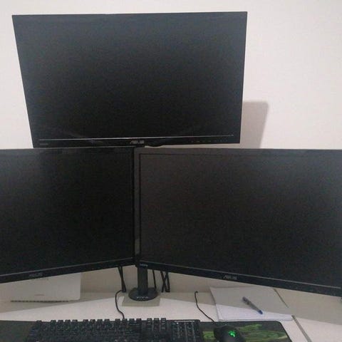 Säljer ett komplett dubbel skärms-paket bestående av två MSI Optix G241 24” skärmar monterade på en stabil dubbel skärmarm.