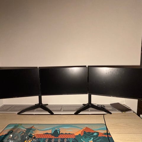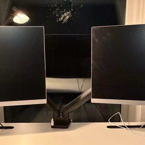 Komplett arbetsstation: 2 × MSI Optix G241 24” + dubbel skärmarm