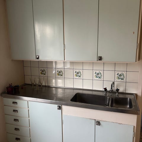 Bänkskåp separat del är 70x80 med träskiva och skärbräda .