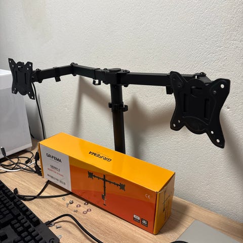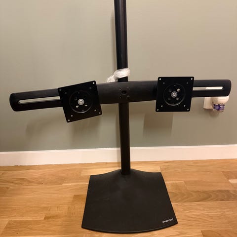 Skärmstativ för två skärmar, så här står det om det på Amazon: