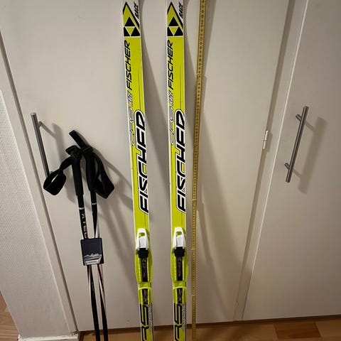 Komplett längdskidåkningsset med skidor, stavar och pjäxor. Mycket sparsamt använt.
