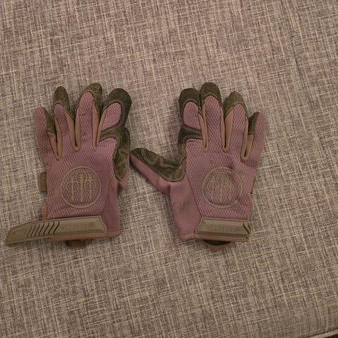 Hestra handskar i brunt läder med justerbar rem och knapp. Insida med grönt foder. Passar unisex. Storlek 8