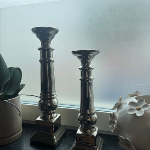 silver ljusstake som är silver plåtad med märket Reg.Design med fem armar.