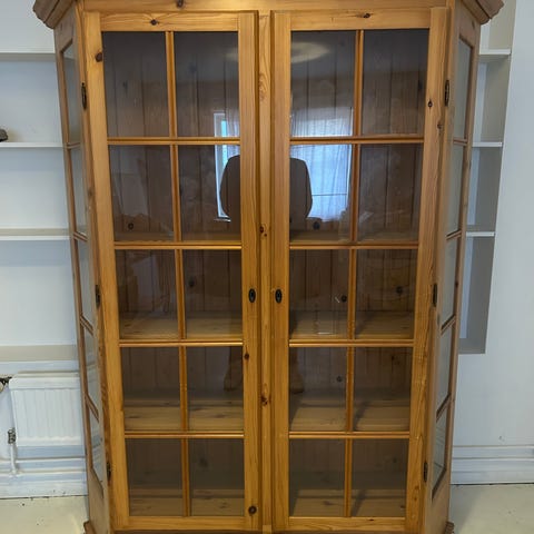 En del med vitrinskåp och 2 lådor samt ett skåp med bänk och 2 lådor