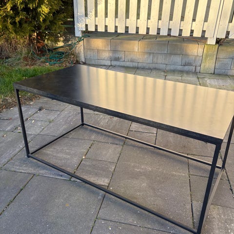 Snyggt och stabilt bord i industriell stil, perfekt för vardagsrum. Bordsskiva i modern betonglook och svart metallram som passar de flesta inredningsstilar. Kan användas som soffbord, sidobord eller avlastningsbord.