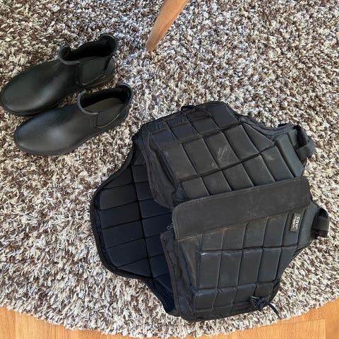 Tre stora säckar med ridgrejer, kläder mm. Stövlar i stl 38, jackor, tröjor mm i stl S.