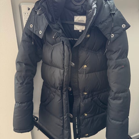 Boomerang dunjacka i blå färg, storlek XXS för dam. Jackan är tillverkad av dun och har en avtagbar päls.