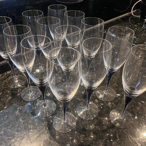 5 st Orrefors Chateau glas för dessertvin 15 cm höga, i klart glas. Glasen har en klassisk design med stjälk och rundad kupa.