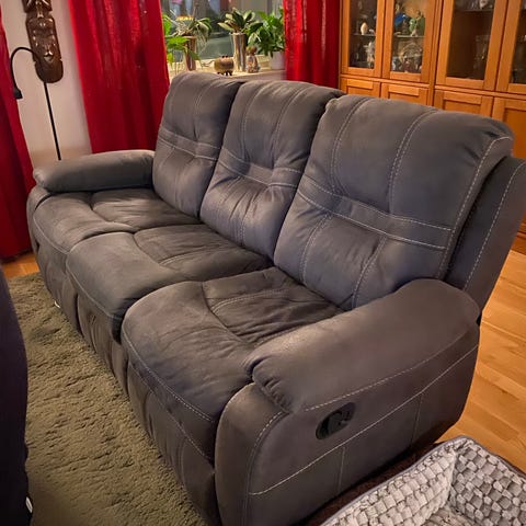 Väldigt bekväm soffa från Mio med recliner på båda ytterplatserna. Inköpt 2021 och säljes nu pågrund av platsbrist i nya huset.