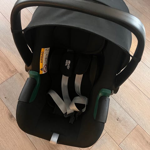 Britax Römer Babyskydd upp till 13 kg. Köpt i augusti 2021. Finns tecken på användning, tex repor. Men i gott skick och har inte varit med om krock. Tyget nytvättat och helt.
