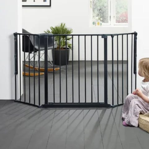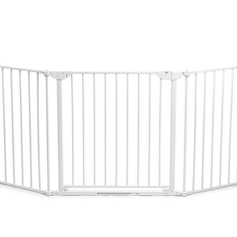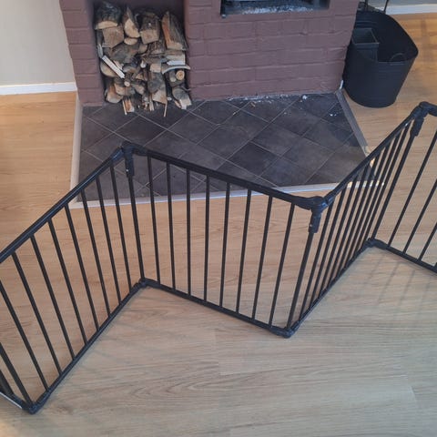 Säljer barngrind som kan fungera som skydd för kamin och är i mkt bra skick. Det finns 2 extra förlängningar.