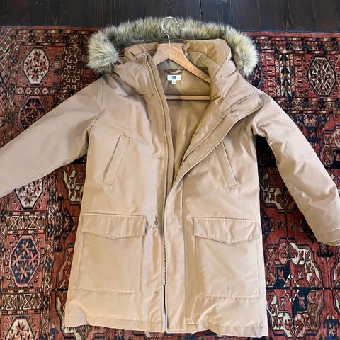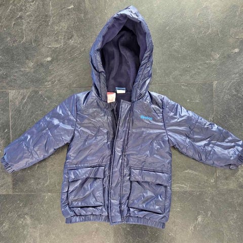 Mörkblå, fleecefodrad luva som är avtagbar. Håller värmen väldigt bra