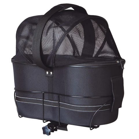 Hundväskan har justerbara, ergonomiska och vadderade axelremmar samt justerbar midjerem för bättre stabilitet. Näten på väskans sidor gör den luftig och skön för hunden. Bakstycket är förstärkt och väskans dyna är klädd med mjuk plysch. Tyget på dynan är avtagbart och kan tvättas i 30 grader.