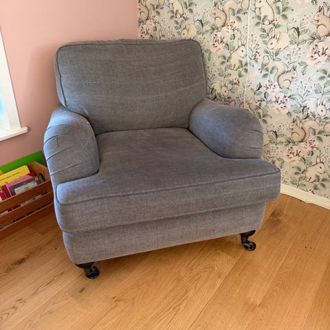 Oxford soffa och fåtölj med fjäderblandning. Soffans kuddar och dynor har avtagbar klädsel.