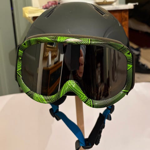 Anon skid- och snowboardhjälm i turkos färg. Hjälmen är avsedd för skydd vid vintersportaktiviteter som skidåkning och snowboarding. Den har justerbara remmar för att säkerställa en säker och bekväm passform.