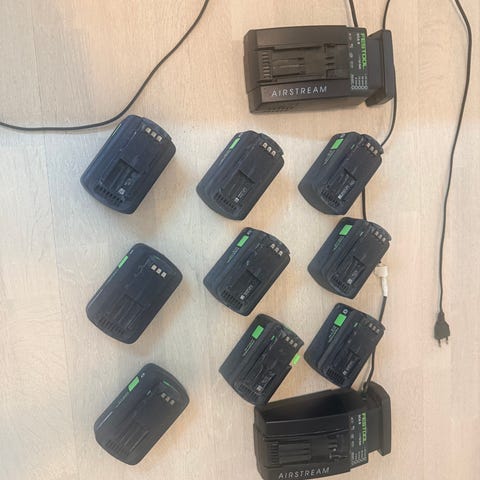Laddare samt två batterier, lite färg på men fungerar bra.