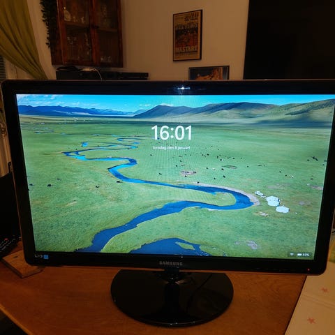 Säljer min Samsung 27-tums välvd bildskärm (Modell: LC27F390). Den är i mycket fint skick – skyddsplasten sitter till och med kvar på kanterna!