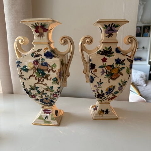Vas med handtag och lock, renässans dekor. Stämpel under vasen, 中国制造 MADE IN CHINA.
