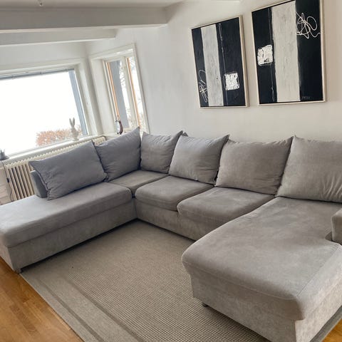 Stor fin ljusgrå hörnsoffa från Mio.