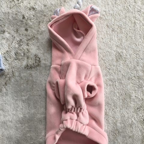 Brun hundoverall till mycket liten hund, med dragkedja upptill och muddar vid ärmslut och benslut. Overallen har reflexdetaljer och justerbar dragsko