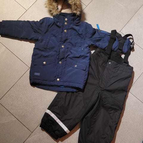 Varma kläder mot kallt väder. Jacka och hängselbyxor