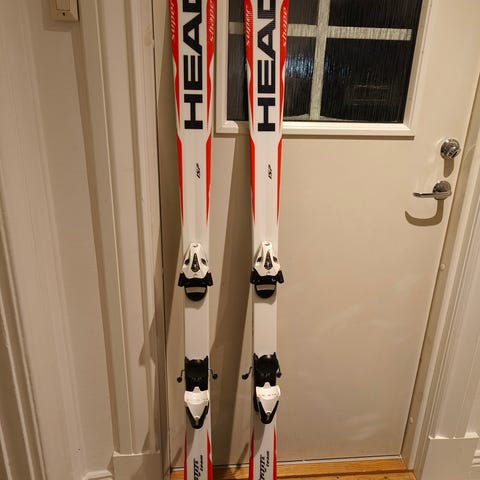 Vita skidor och svarta pjäxor med gråa spännen - 600 kr