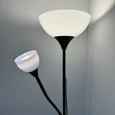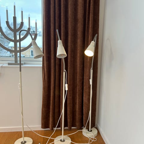 Dessa två Lunta lampor är i fint skick och bland de ”svårare” i sitt slag att få tag i. Helvita med silver vridknappar som framkallar ett väldigt stort dimmer sträckning. Bägge fungerar utmärkt.