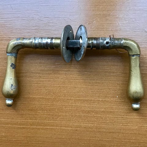 3 st antika dörrhandtag i mässing