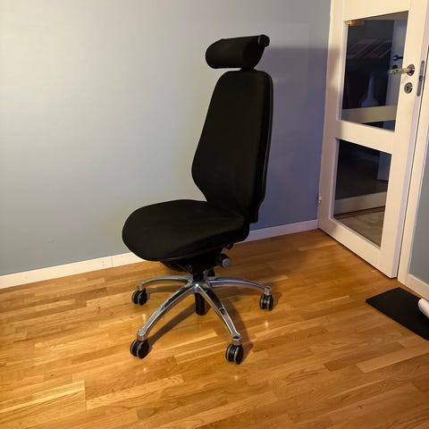 Säljer en professionell och ergonomisk kontorsstol av modellen RH Logic 400 i grått slitstarkt tyg. Detta är en kvalitetsstol som ofta används på företag för att förebygga ryggproblem, perfekt för hemmakontoret.
