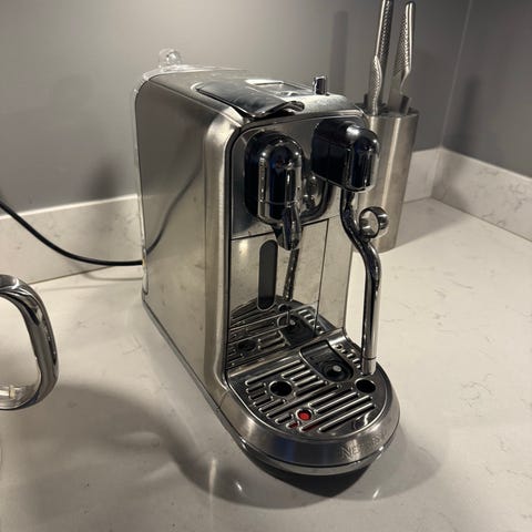 Nespresso Creatista Plus espressomaskin i rostfritt stål. Utrustad med mjölkskummare och digital display. Passar för att brygga espresso och skapa mjölkbaserade kaffedrycker.