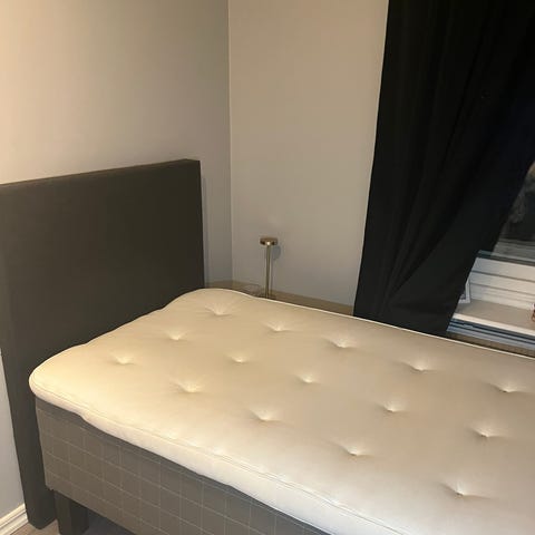 Ny säng från IKEA i storlek 90x200 cm. Madrass finns. Jag tar betalt med Swish.
