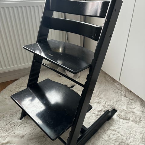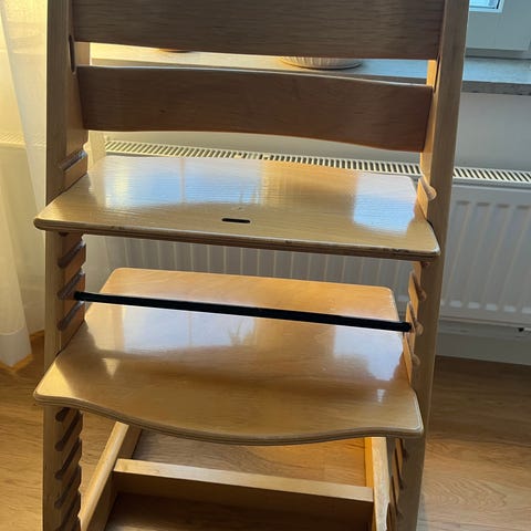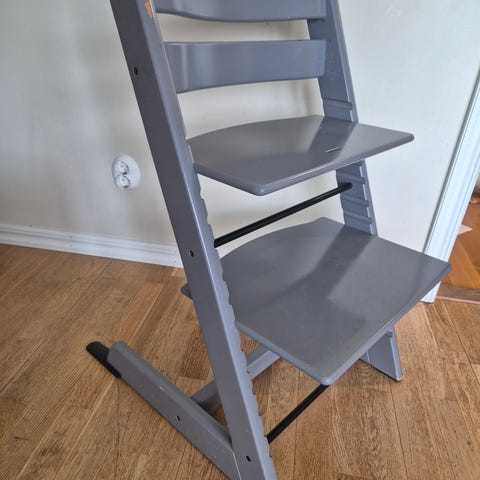 Stokke tripp trapp stol i vit färg i gott skick. Först till kvarn. Varan finns kvar så länge annonsen är tillgänglig.