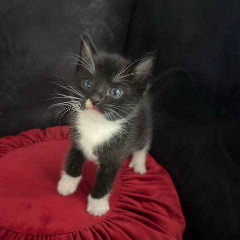 Hon gillar att ligga hos barnen och mysa på kvällarna. Leker gärna med vattenstrålen i handfatet eller andra kattleksaker.