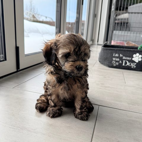 • Mamma Bichon Havanais (26 cm mankhöjd, vikt 6 kg) Pappa Dvärg Pudel (29 cm mankhöjd, vikt 4 kg)