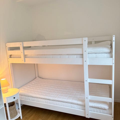 Våningssäng Vestervig från Jysk. Underdel 120cm bred och överdel 80cm bred. Säljes inklusive madrasser. Sängen är monterad på bilderna, men blir delvis demontering vid upphämtning. Väldigt lite använd. Köpt i 2025.