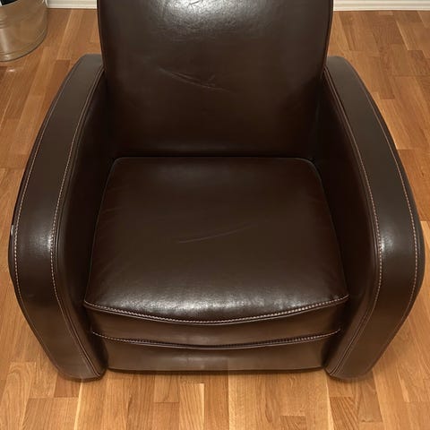 Läsfåtölj i läder med pall. Kvalitetsmodell av något äldre snitt.