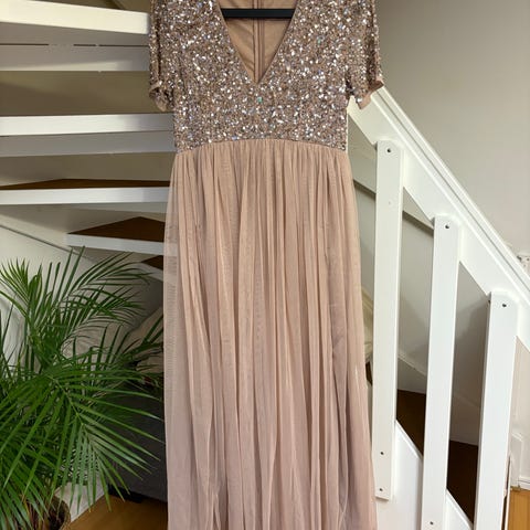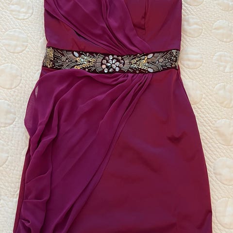 Elegant vinröd maxiklänning från Nelly Eve i storlek 36. Axelbandslös modell med paljettdetaljer över byst och rygg som ger en lyxig och festlig look. Klänningen är helt ny och aldrig använd, dock finns prislappen inte kvar.