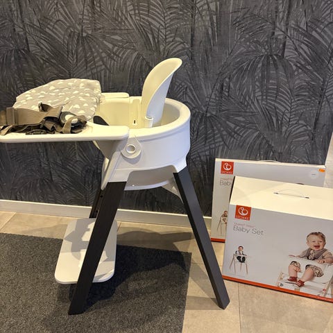 Stolen har en stabil konstruktion med fotstöd och avtagbar bricka för enkel rengöring och anpassning efter barnens behov och hur de växer!