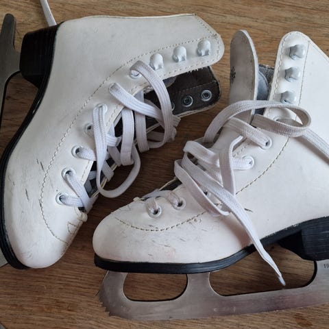 Barnskridskor i vitt och rosa med justerbara spännen för bättre passform. Skridskorna är avsedda för allmän användning på is och har en design som passar barn. Storlek 29-32. I jättebra skick (har använts bara några gånger).