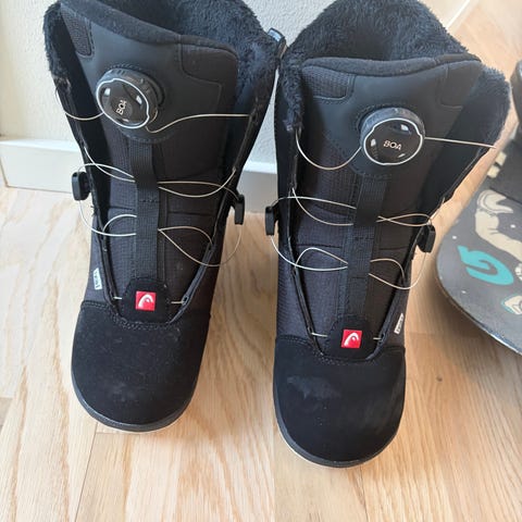 Mycket sparsamt använda snowboard boots i storlek 33. Säljes pga sonen växt ur dem. En liten fläck på ena tådelen annars som nya.