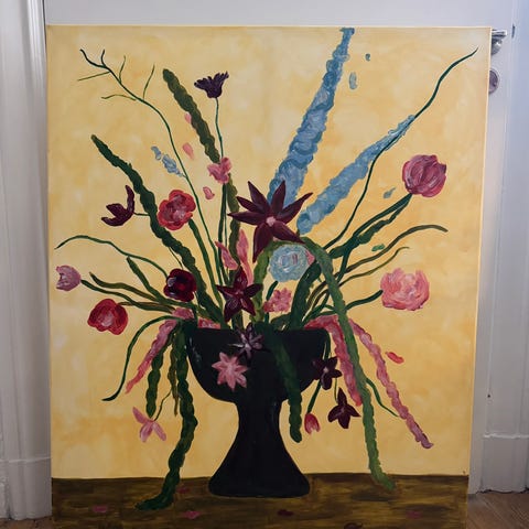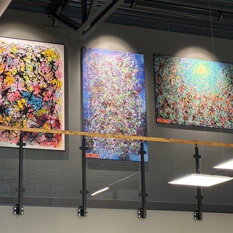 Ett kraftfullt originalverk i abstrakt expressionistisk stil. Djup blå bakgrund med energifyllda stänk i vitt, grönt, rött, gult och svart. Ett modernt statement-verk som ger liv och karaktär åt rummet.