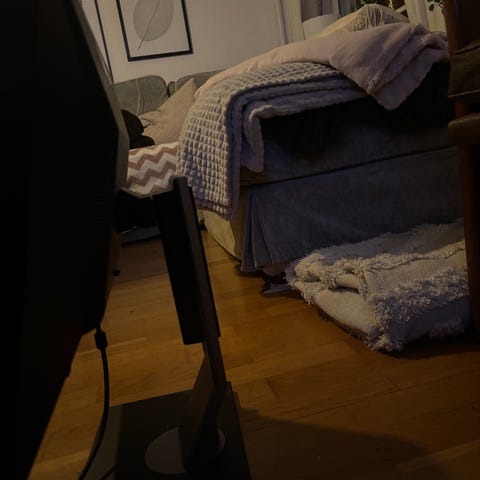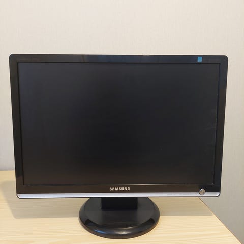 Skärmen är 60hz, har en rund fot och kan vinklas framåt och bakåt