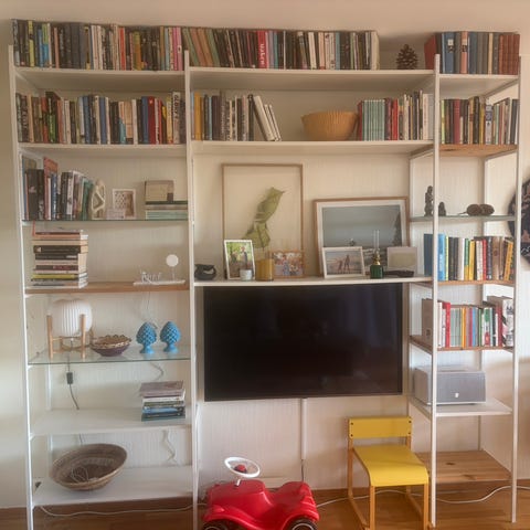 Säljer hela systemet med alla hyllor, inklusive alla böcker.