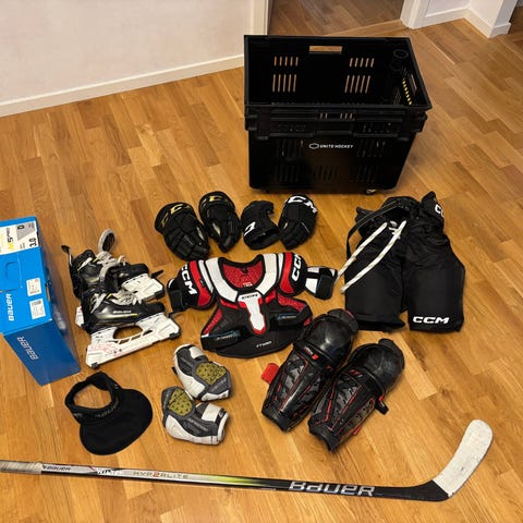 Bauer och CCM ishockeyutrustning set med skydd och hjälm (nya och använda)