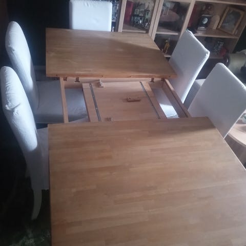 IKEA Matbord med iläggsskivor och 6 klädda stolar