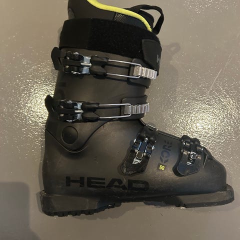 Head pjäxa Core 60 i svart färg i storlek 21/21.5. Pjäxorna är utrustade med flera spännen för justering och har en limegrön insida. Passar för skidåkning och är designade för att ge stöd och komfort. Endast använda en säsong.