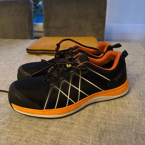 Två set Giro fotbäddar med fyra olika storlekar på fotvalvsstöd (S, M, L, XL). Storlek 43-44. Notera att ett set fotbäddar och tre fotvalvsstöd är använda (se bild tre), men övriga delar är i nyskick.